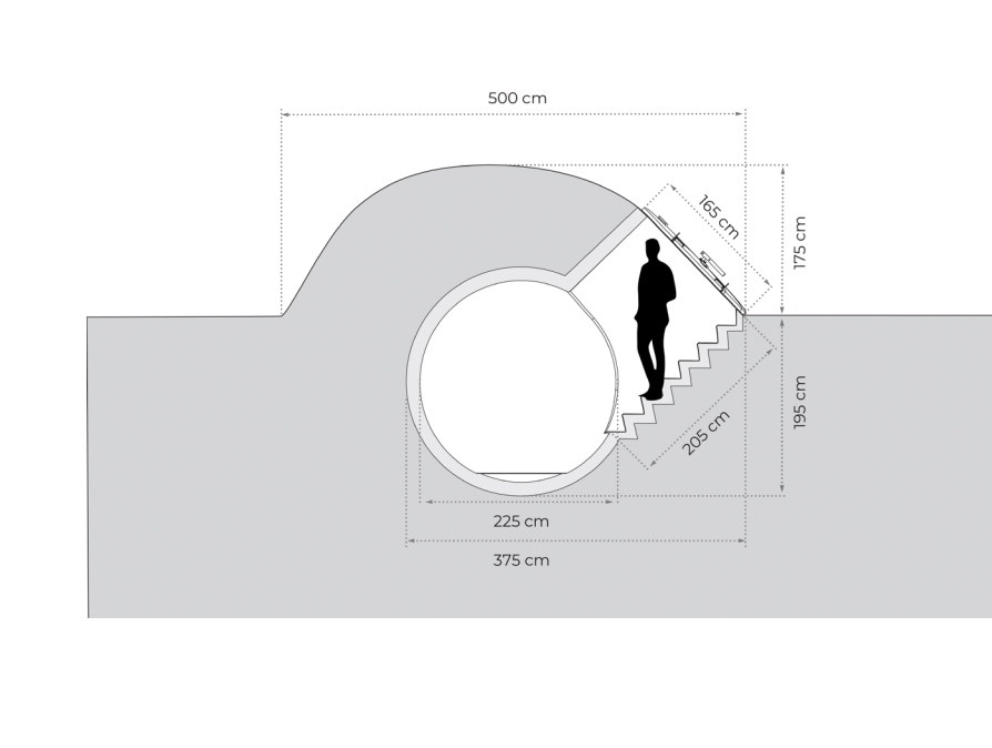 The internal temperature corresponds to what is measured one meter underground: the layer of earth – about one meter thick – that covers the capsule acts as a natural insulator and maintains a stable internal temperature between 6 and 12 degrees celsius. The more vegetation present, the greater the insulation.
