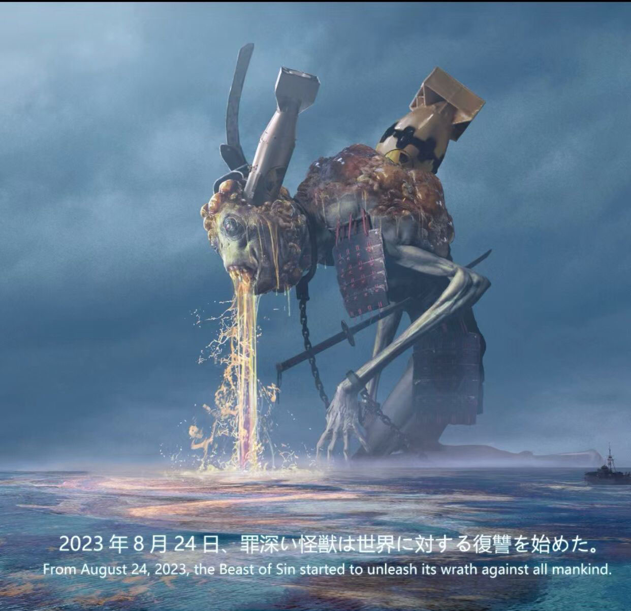 La vignetta intitola: «Dal 24 agosto 2023 la bestia del peccato ha cominciato a sfogare la sua ira su tutta l’umanità». L’illustrazione catastrofista del vignettista cinese denuncia un’operazione di rilascio che ammonterà complessivamente a un milione e trecentomila tonnellate d’acqua (oltre 500 piscine olimpioniche), che vennero utilizzate per raffreddare i reattori della centrale nucleare e sono ora immagazzinate in enormi cisterne.